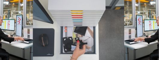 A hatékonyság elsődleges szempont a gyártásban. Ezért a gyártási területek irodáinak tökéletesen rendszerezettnek kell lenniük. A kiváló minőségű VARICOLOR® MIX fiókos tároló gondoskodik arról, hogy minden fontos dokumentum és terv kéznél legyen és jól rendszerezett maradjon. Az opcionális címkézési lehetőséggel ellátott fiókok biztosítják az átláthatóságot, miközben professzionális megjelenést nyújtanak.